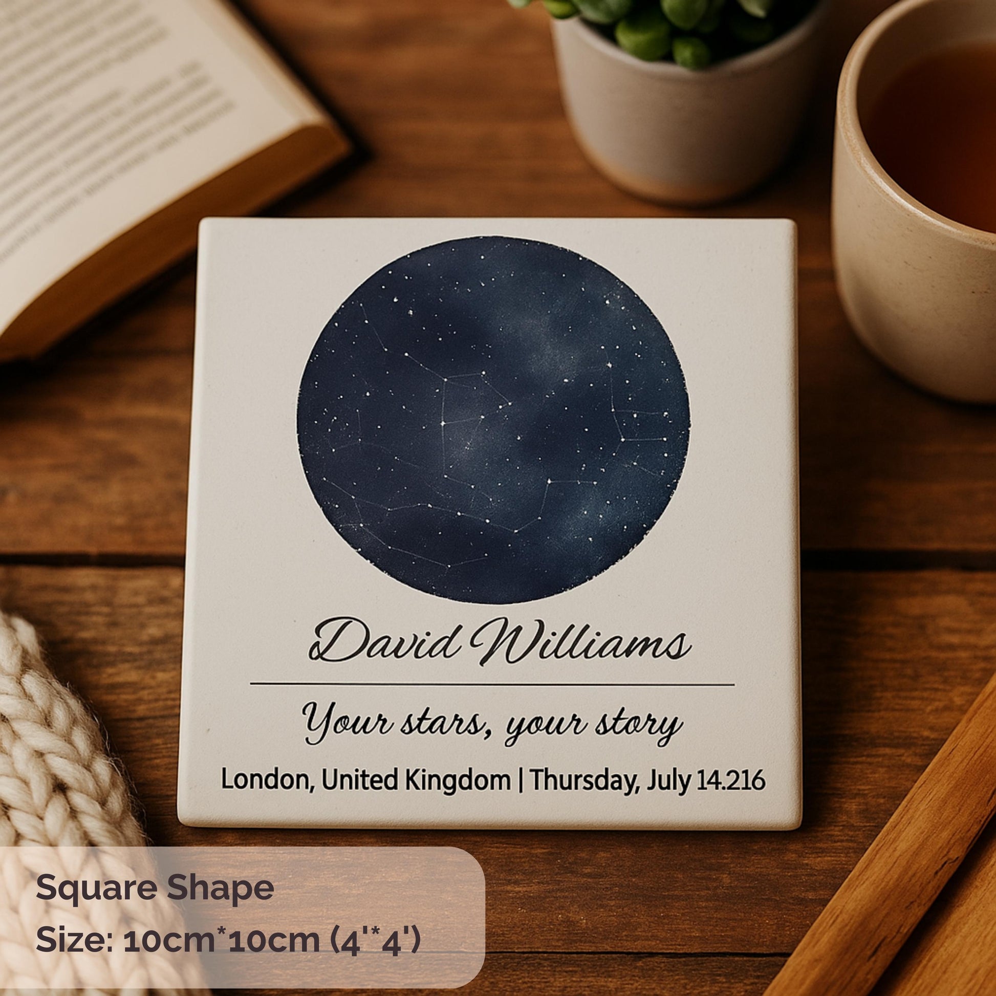 Personalised Star Map Coaster Custom Night Sky Map with Name, Date & Location for Wedding, Anniversary, Birthday, Milestone Gift